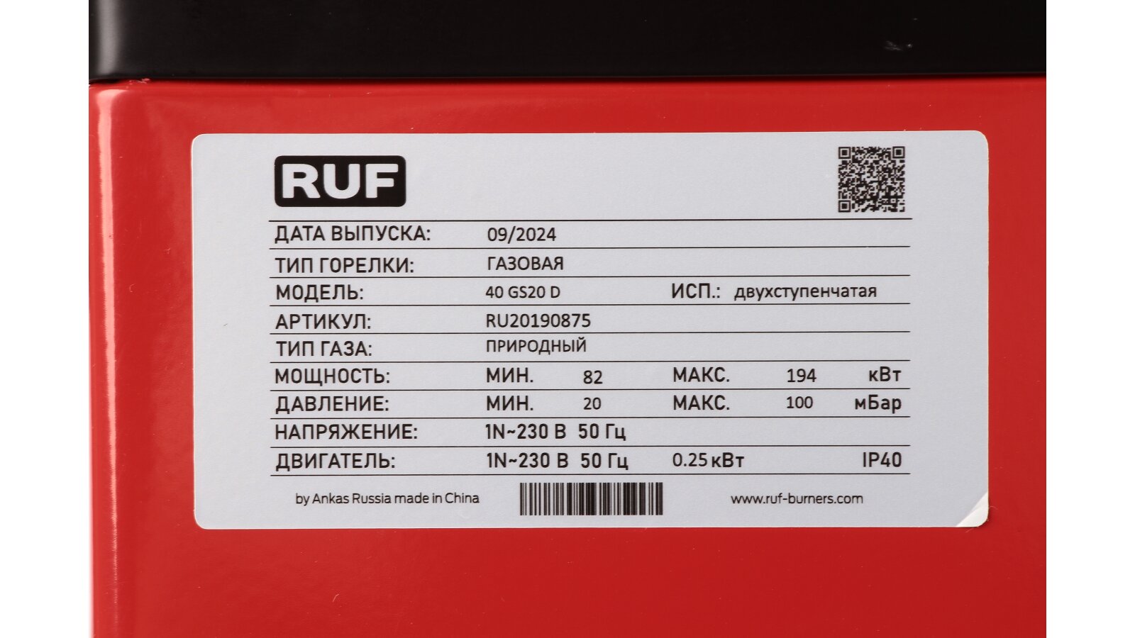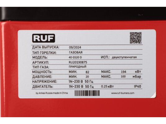 Артикул: RU20190875Страна бренда: РоссияЭлектродвигатель: 250 ВтМощность горелки: от 43 до 194 кВтВид топлива: газоваяМощность котла под горелку: от 145.5 до 155.2 кВтПротиводавление: от 0 до 5.1 мбарКласс пылевлагозащиты: IP40Комплектация: с головой сгоранияЭлектропитание: 220 ВИсполнение горелки: двухступенчатая