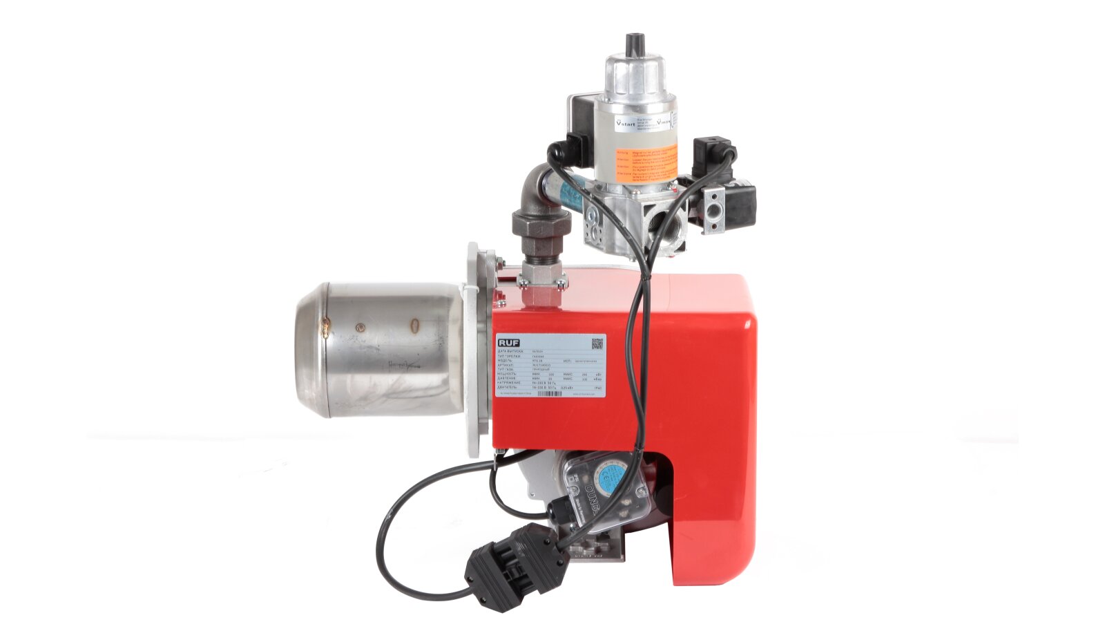 Горелки для котлов отопления RUF RTG поставляются с газовой рампой, головой сгорания, штекером для электроподключения, монтажным фланцем с теплоизоляционной прокладкой.