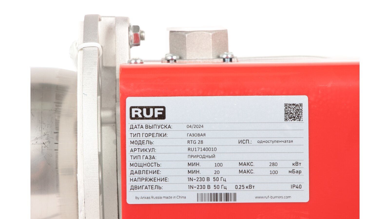 Газовая горелка RUF RTG рассчитана на использование в системах теплоснабжения мощностью до 224 кВт. Востребована для оснащения промышленных котлов отопления, подогрева воды, сушилок, печей, паро-, теплогенераторов.
