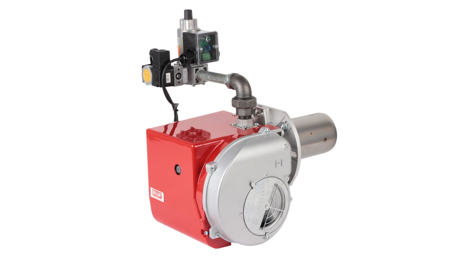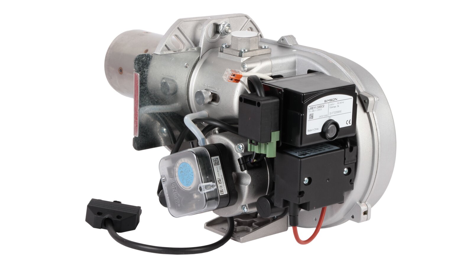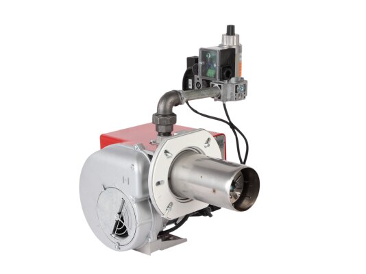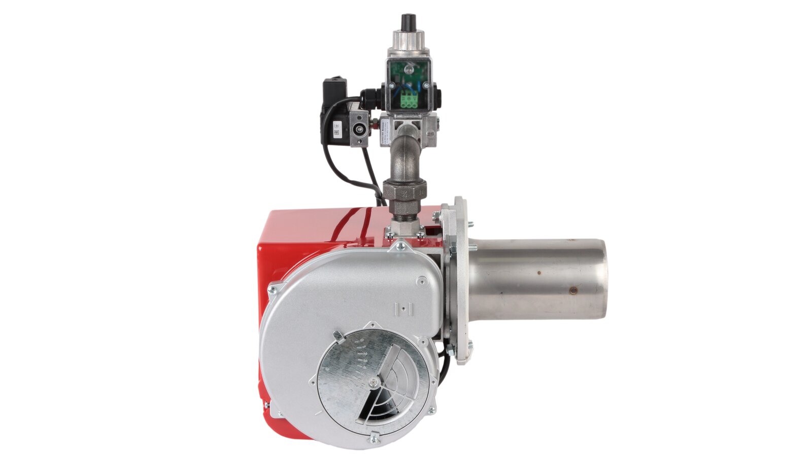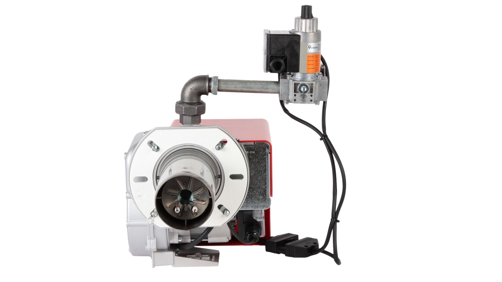 Электропривод имеет регулируемую шкалу, управляет воздушной и газовой дроссельной заслонкой с высокой точностью. В горелке установлены компоненты системы безопасности: реле давления воздуха, электромагнитный клапан, реле давления газа (мин., макс.). В комплект поставки включена газовая рампа, перед которой размещается фильтр и ручной запорный газовый кран.
