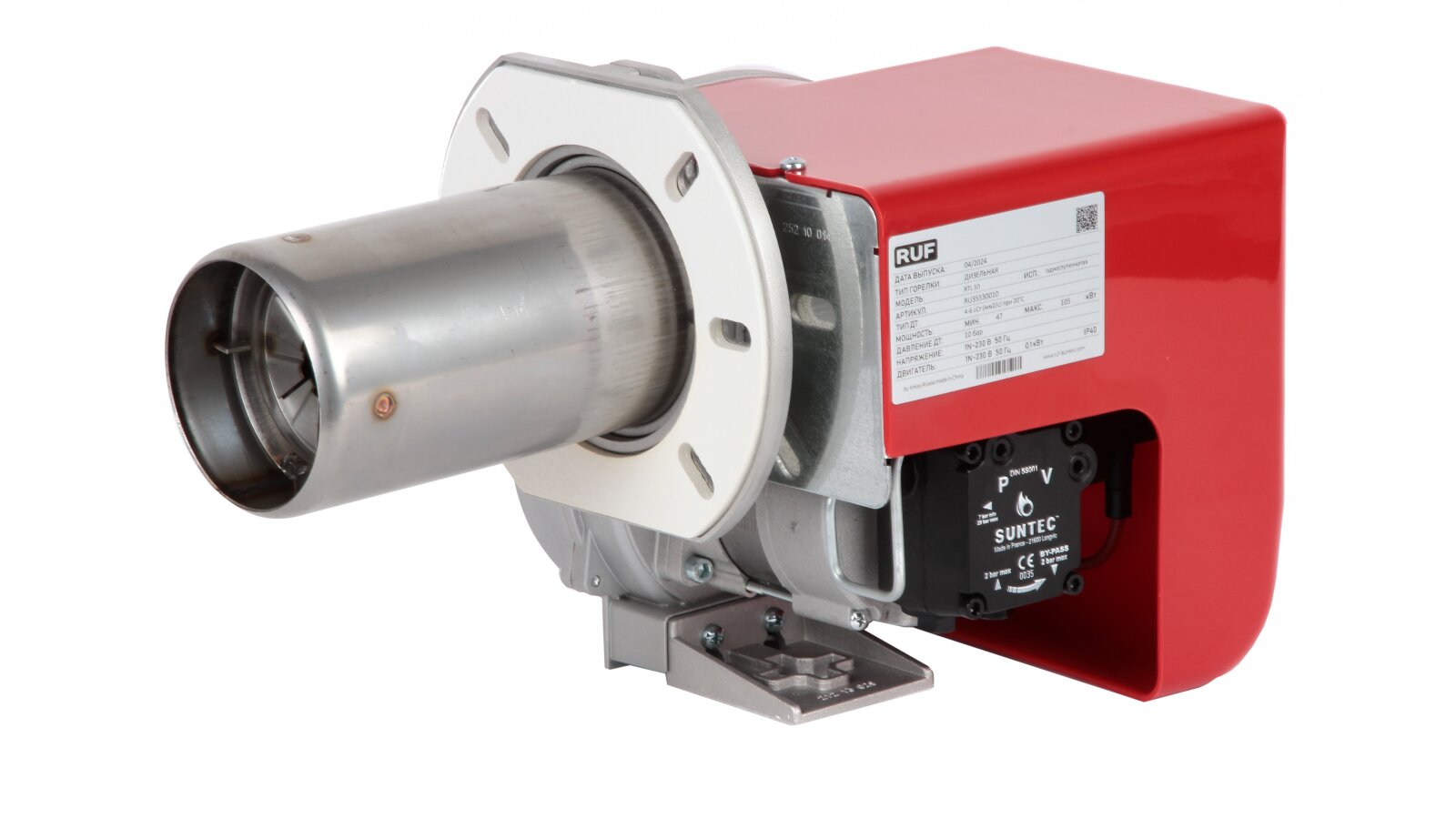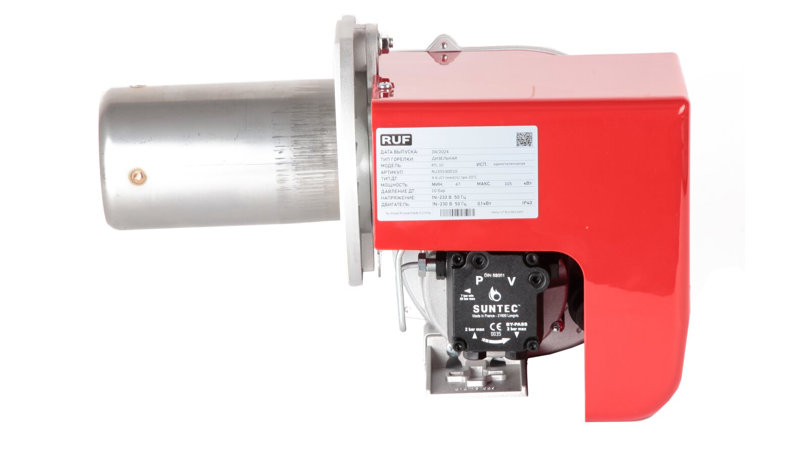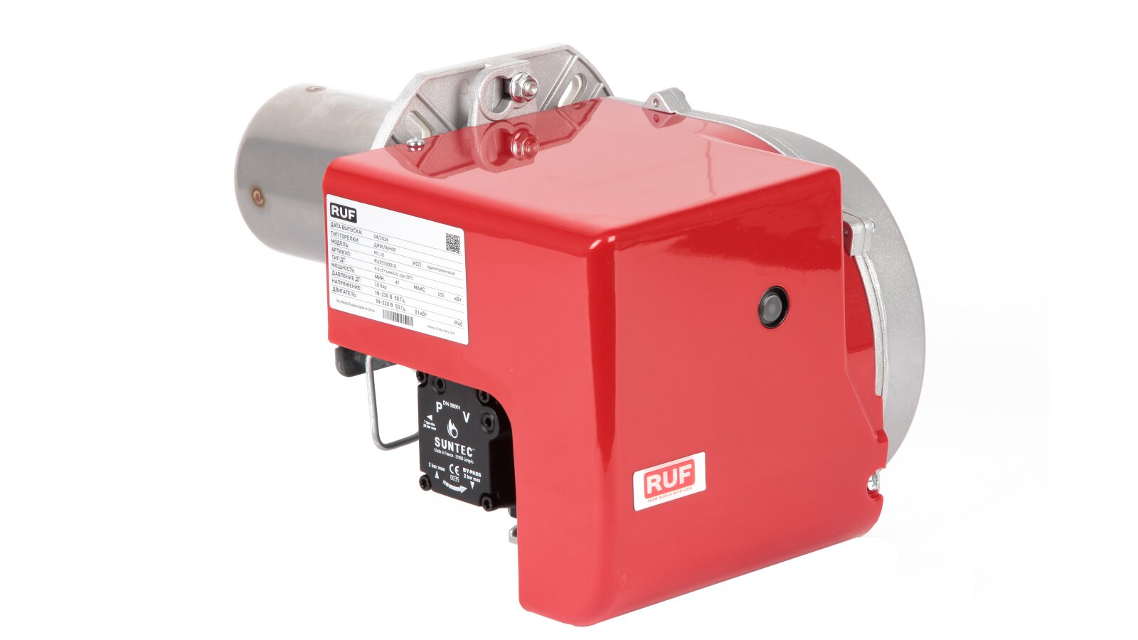 При изготовлении дизельной горелки RUF RTL использованы узлы и компоненты европейских производителей. Корпус моноблочного типа защищен эргономичным кожухом, снижающим уровень шума при работе горелки.
