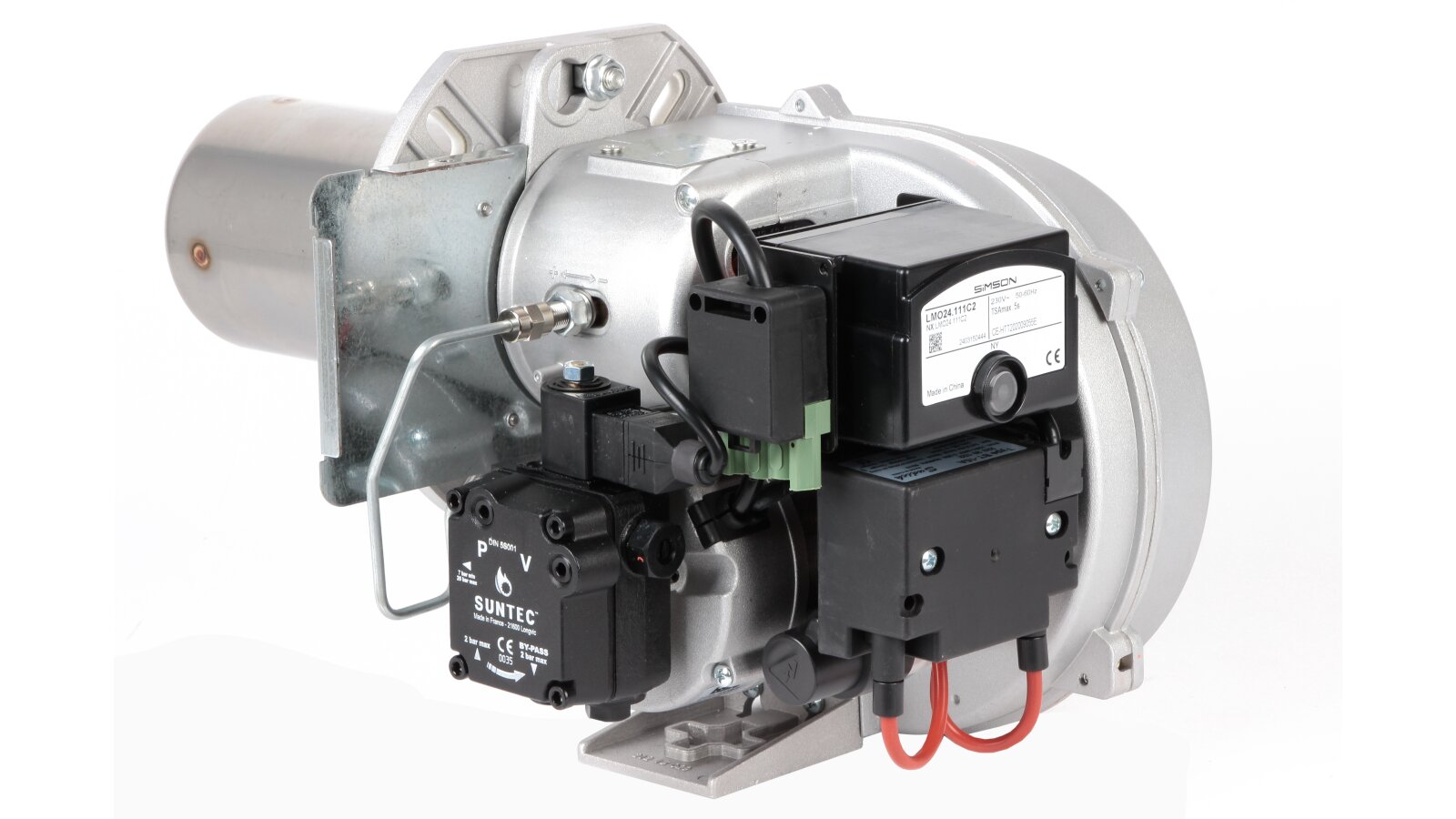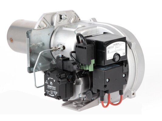 Основные комплектующие горелки: топливный насос Suntec, двигатель 0,1 кВт, запальное устройство, электрод розжига, блок автоматики LOA24, вентилятор, фотодатчик, огневая голова. Опционально доступна удлиненная голова сгорания. Для защиты насоса от повреждений перед ним необходимо установить фильтр. Электрические соединения защищены от неправильного подключения.