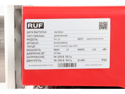 Дизельные горелки для котлов отопления RUF RTL прослужат не менее 15 лет при соблюдении рекомендаций по монтажу и эксплуатации. Подробную информацию можно уточнить у наших консультантов.