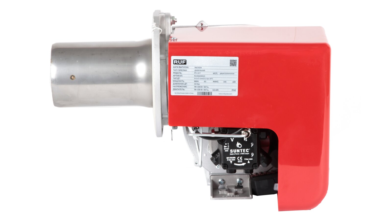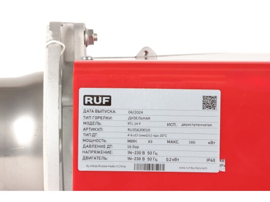 Дизельная горелка RUF RTL 14 P, арт: RU35620010 используется для эффективного сжигания топлива при эксплуатации промышленных топочных установок средней мощности, до 132 кВт. Работает в двухступенчатом режиме. Отличается высоким уровнем безопасности, низким энергопотреблением, устойчивым горением, простотой монтажа и обслуживания. Поставляется со стандартной головой сгорания, которую, при необходимости, можно заменить на удлиненную (опция).